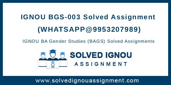 IGNOU BGS-003 Solved Assignment 2024-25 in English Medium only – This is one of the courses offered under the IGNOU BA in Gender Studies (BAGS) program. Additionally, it is a compulsory course (CC) for BAGS (BA Gender Studies) 5th and 6th semester program.