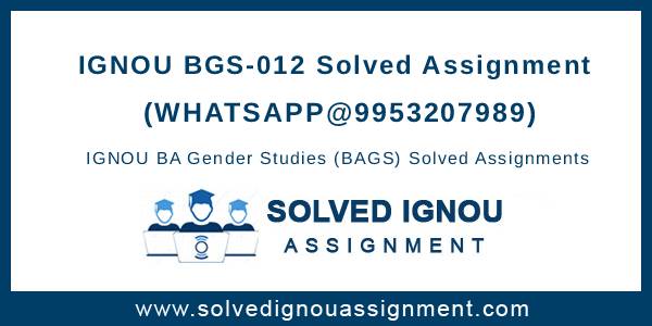 IGNOU BGS-012 Solved Assignment 2024-25 in English Medium only – This is one of the courses offered under the IGNOU BA in Gender Studies (BAGS) program. Additionally, it is a compulsory course (CC) for BAGS (BA Gender Studies) 4th semester program.